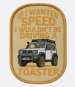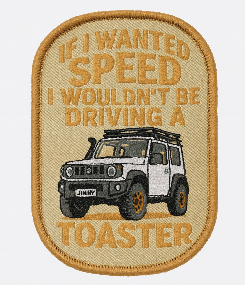 The If I Wanted Speed, I Wouldn’t Be Driving a Toaster patch is the ultimate badge of honour for every Jimny owner who knows their rig wasn’t built for horsepower… but has personality for days. Whether you’re getting overtaken by caravans, struggling up highway hills, or sending it off road at a solid 12 km/h, this patch keeps it real.